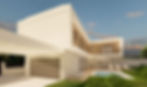 A solução adapta-se à morfologia do terreno, numa composição em forma de L, de linguagem contemporânea.